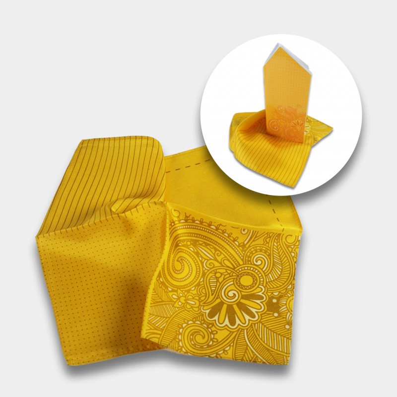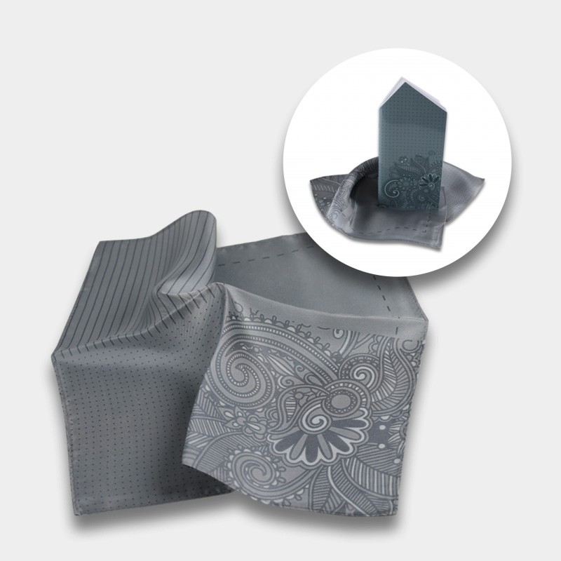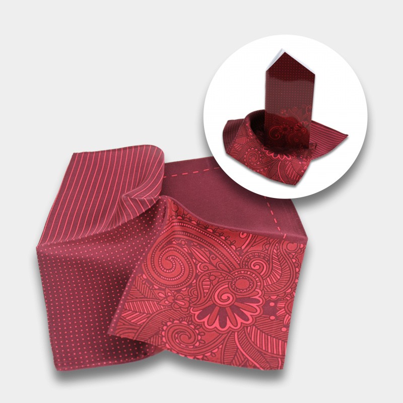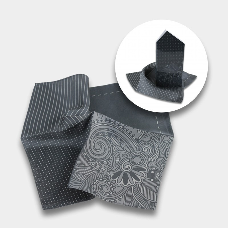Set bestehend aus einem Einstecktuch mit 4 verschiedenen Dessins aus hochwertiger Seide und einem Notizbuch (22 Blatt). Dieses ist in Form und zum Tragen wie ein Einstecktuch. Beides in einer schönen Verpackung.